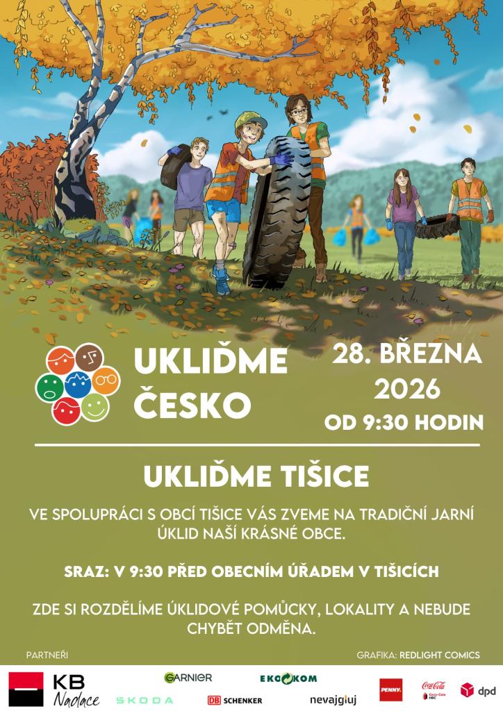 ???? Sraz je před Obecním úřadem v Tišicích, kde si rozdělíme lokality a dostaneme úklidové pomůcky.